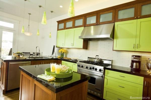 Яркий дизайн кухни с фисташковым цветом