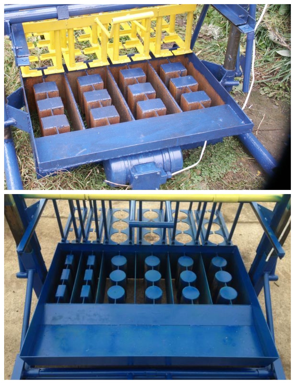 Также нужно создать специальный пресс, который поможет сделать блоки ровными и нужного размера. Пресс должен быть чуть меньше самого устройства, чтобы пресс полностью заходил в корпус нашего станка. Отверстия делаем такие, чтобы они соответствовали цилиндрам.