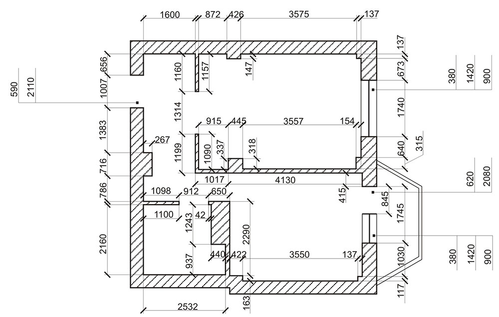 - Обмерный план. Нужно измерить площадь помещения, а также всех прилагаемых составляющих элементов проекта.