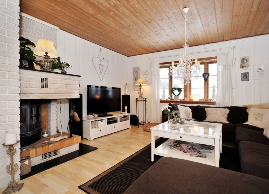 Для небольших гостиных в стиле прованс и кантри подойдут угловые и островные камины с декором, имитирующим дерево, камень и т.п.