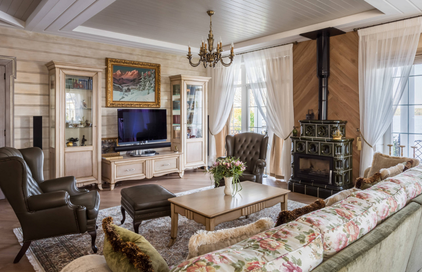 Для гостиной в стиле кантри такие шторы являются фаворитами, а подобранный к ним текстиль наполнит атмосферу гостиной теплом и домашним уютом.