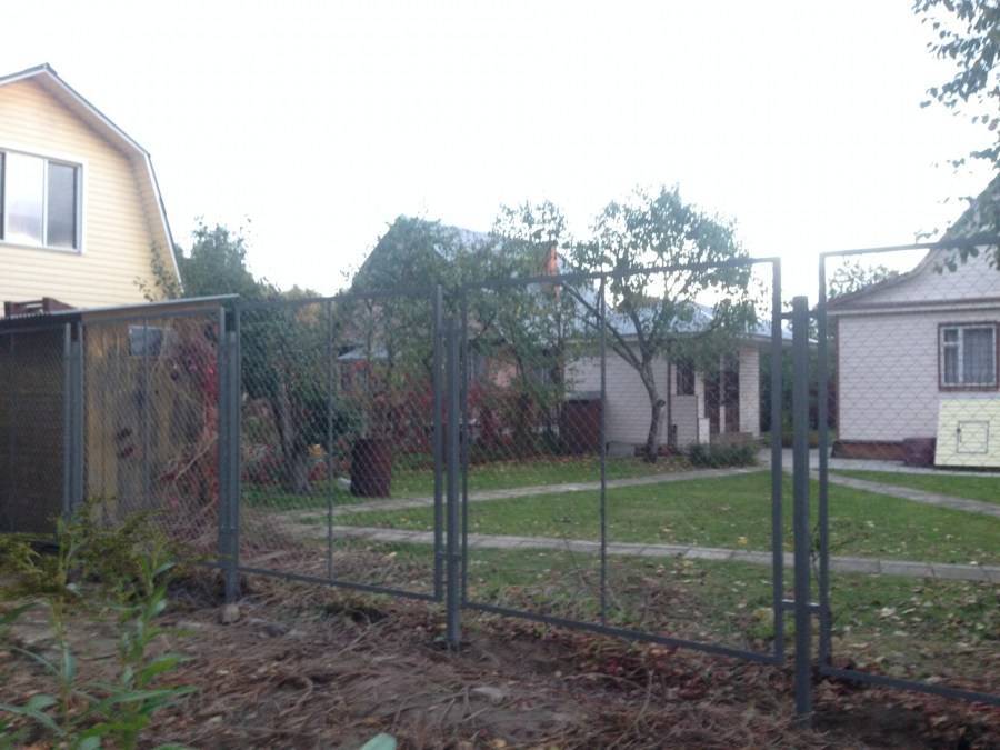 В качестве материала для ограждений наиболее распространена, популярна и узнаваема сетка-рабица. Представляет собой полотно из вкрученных друг в друга плоских спиралей. Забор из сетки-рабицы — один из самых распространённых Эта особенность позволяет наращивать забор без видимого шва до бесконечной длины. Говорят, что изобрёл станок для её плетения Карл Рабиц, и что первоначальным предназначением такой сетки было не строительство ограждений, а армирование при штукатурных работах. Действительно, сетка-рабица имеет пространственную структуру, поэтому гораздо эффективнее для этих целей, чем плоские штукатурные сетки.Сетка-рабица при большом увеличении Выпускаемая сетка различается размером ячейки, толщиной проволоки и шириной рулона. Наиболее распространённый размер — 1,5 м, но можно приобрести полотно и четырёхметровой ширины. Сетку-рабицу обычно плетут из стальной проволоки, но любители экзотики могут поискать алюминиевую или нержавеющую. Для защиты от коррозии проволоку покрывают цинком или полимером. Самый простой способ устройства ограждения из такой сетки — растянуть её между столбами. Стоит учесть, что при монтаже полотно необходимо хорошо натянуть, поэтому нужно обеспечить достаточную прочность и устойчивость столбов. Кроме того, со временем металлическая сетка провисает под собственной тяжестью. Самый простой способ устройства ограждения из сетки-рабицыДругой способ — изготовление отдельных секций в жёсткой металлической раме. Такое ограждение будет более солидно выглядеть, но и стоимость увеличится. Самый простой вариант из недорогой сетки обойдётся вам от 900 рублей за погонный метр с монтажом. Можно сэкономить и установить ограждение самостоятельно. Десятиметровый рулон бюджетной сетки высотой 1,5 м будет стоить около 600 рублей. На крайний случай, если у вас много проволоки и есть свободное время и желание, сетку-рабицу можно сплести самостоятельно на небольшом кустарном станке. Правда, не могу сказать, что это будет самый дешевый вариант. При расчёте стоимости готового забора не забудьте учесть расходы на столбы.Шестигранная кручёная сетка Кроме привычной рабицы, есть и другие виды металлических сеток из проволоки, различающиеся способом изготовления, а значит, внешним видом и техническими характеристиками. Ну и ценой, конечно. Вы можете встретить следующие варианты: шестигранная крученая сетка Манье, тканая, сборная из деформированной проволоки, ЦПВС (цельнометаллическая просечно-вытяжная сетка), шарнирная (другие названия «фермерская», «лесная», «казачка», «чабанка»). Шарнирная сетка