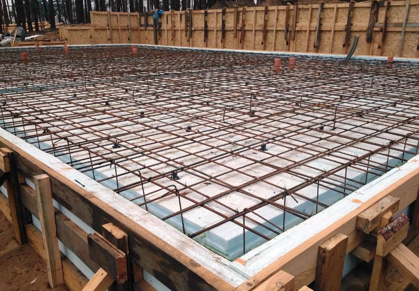 - Измеряется толщина плиты фундамента, отталкиваясь от нее производится расчет нужного количества арматуры.