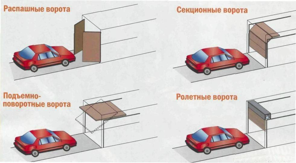 Одновременно с финишной облицовкой в гараже устанавливают ворота, которые могут быть распашными, секционными, роллетными или подъемно-поворотными. Для самостоятельной установки лучше всего подходят простые распашные двустворчатые ворота, остальные конструкции требуют при монтаже определенных профессиональных знаний и умений, которых у обычного собственника, скорее всего, нет.