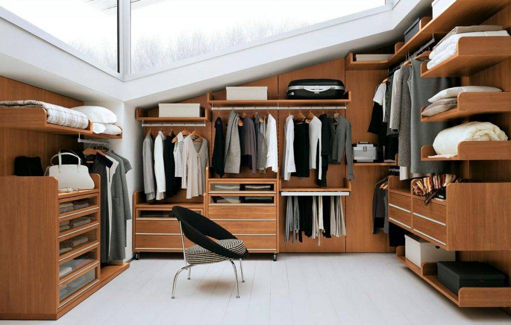 Владельцем частных домов проще, если позволяет пространство, можно отдать под гардеробную целую комнату, особенно подходит мансардное помещение. Специалисты рекомендуют зонировать пространство.