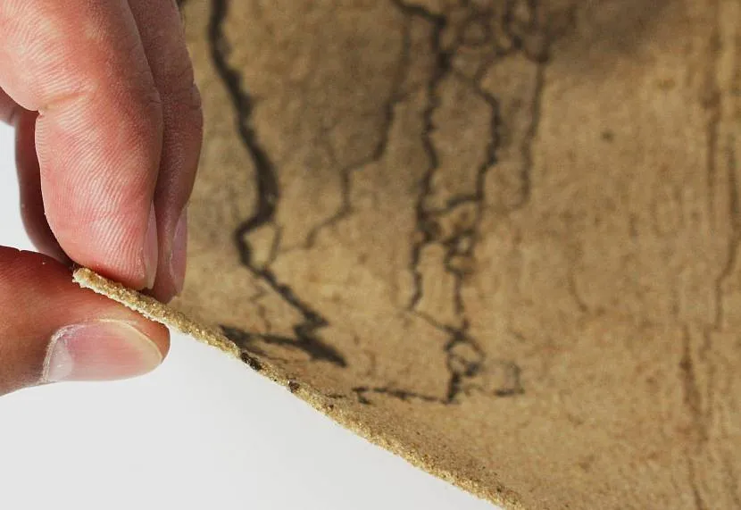 Этот декоративный материал разработали в Германии, около десяти лет назад. Он известен как гибкий (или мягкий) камень, гибкий песчаник, каменный шпон или каменные обои, и примечателен не только внешним видом, но и способом изготовления и использования. Облицовочный материал состоит из трех следующих слоев: