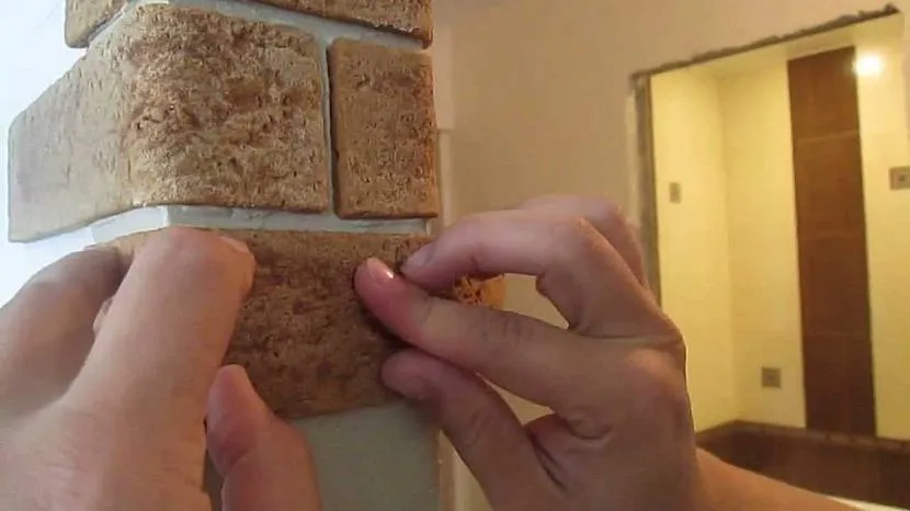 Непосредственный монтаж гибкого камня на поверхность начинается с верхней части левой стороны. В случае образования небольших трещин их сразу же заделывают, используя грунтовку на акриловой основе. После того поверхность затирается гибким камнем.