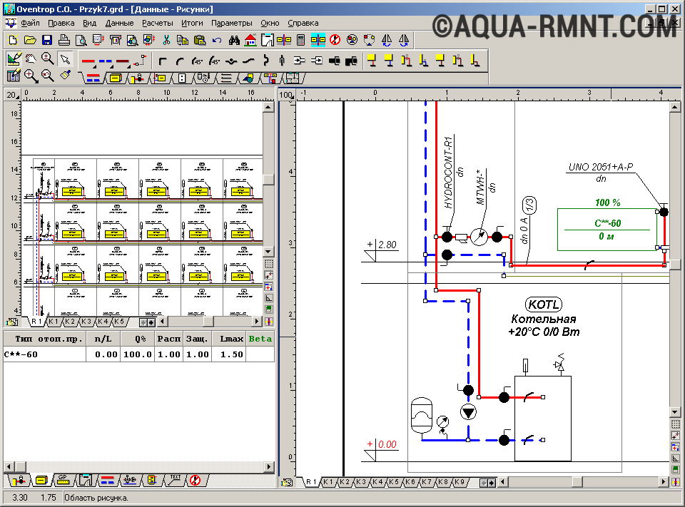 Если в наличии есть специализированная программа для гидравлического расчета системы отопления – достаточно заполнить данные о технических характеристиках котла и перенести отопительную схему. Программный комплект определит оптимальный диаметр труб.