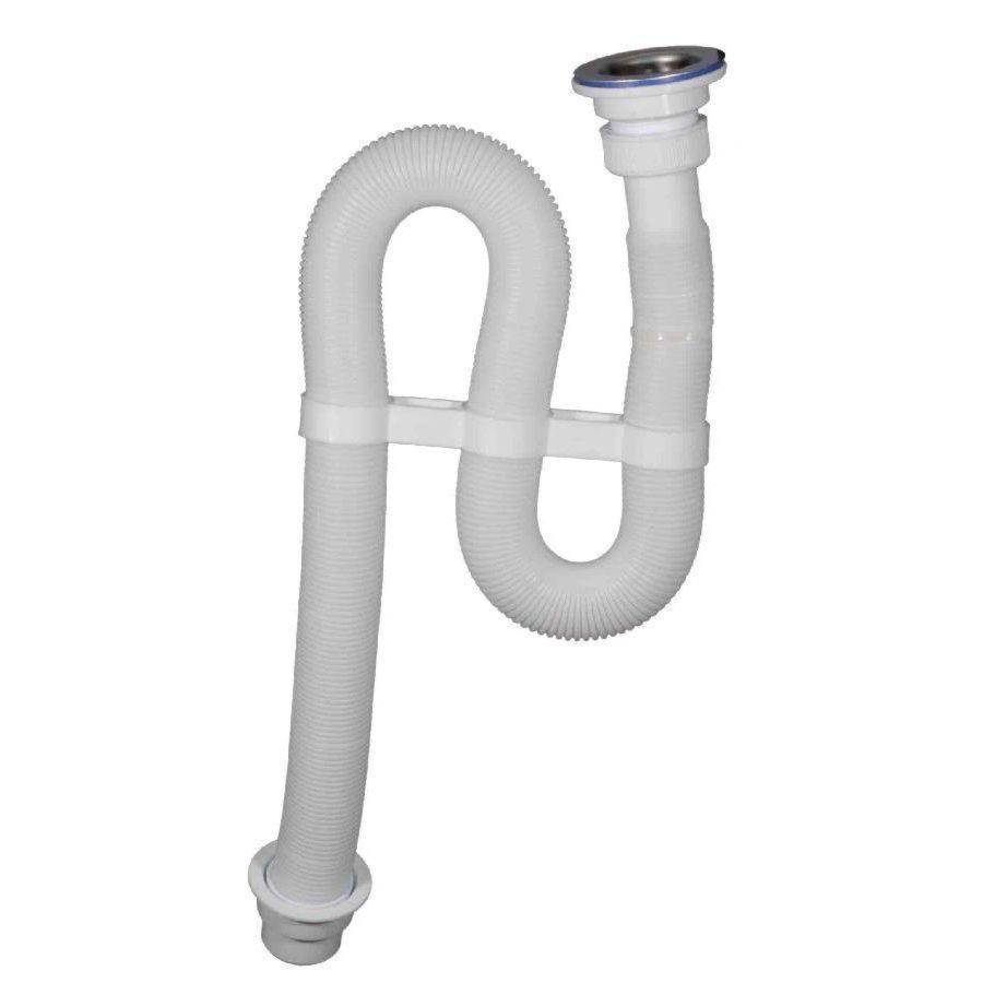 Представляют собой полипропиленовые трубы с гибкой складчатой структурой. Одним концом сифон такого типа крепится к сливу сантехнического прибора, другим — ко входу в канализацию. Между этими точками саму трубку можно изгибать и располагать в большом количестве вариантов, что делает гофрированные гидрозатворы единственно применимыми в малогабаритных квартирах.