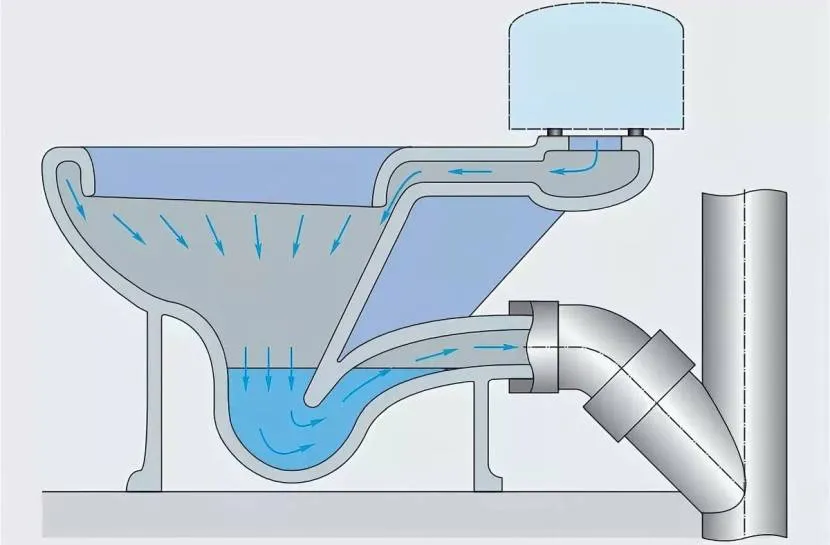 Принцип действия гидравлического затвора на примере чаши унитаза Источник kupisantehniky.ru