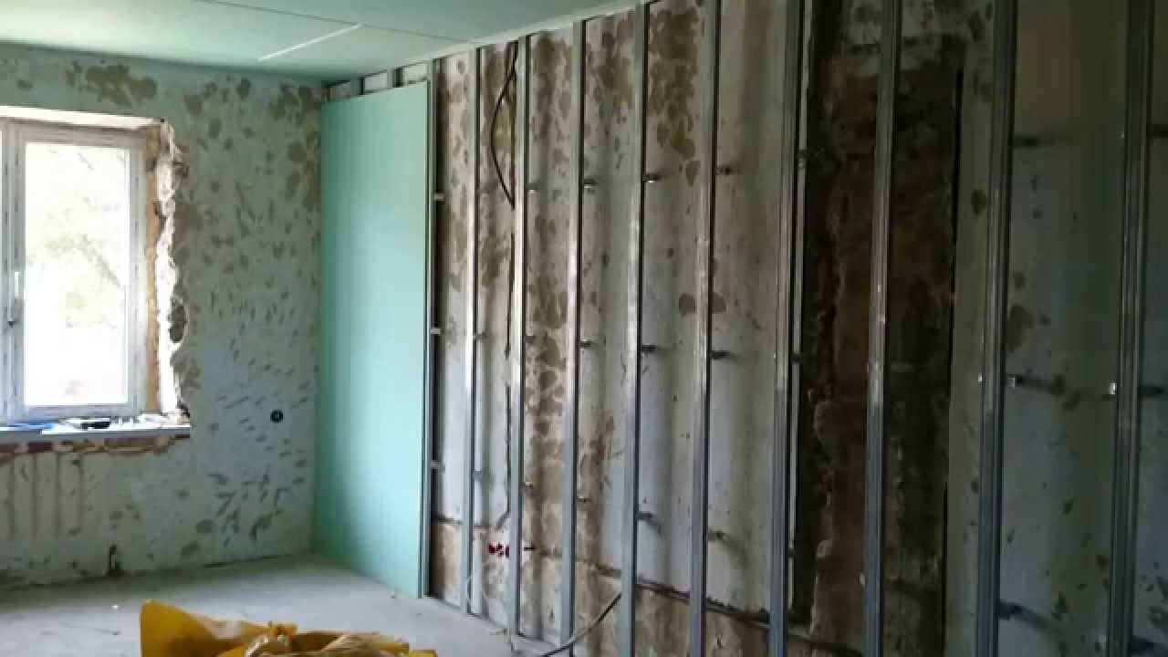 - Монтаж гипсокартона на стену с предварительной обрешеткой стены