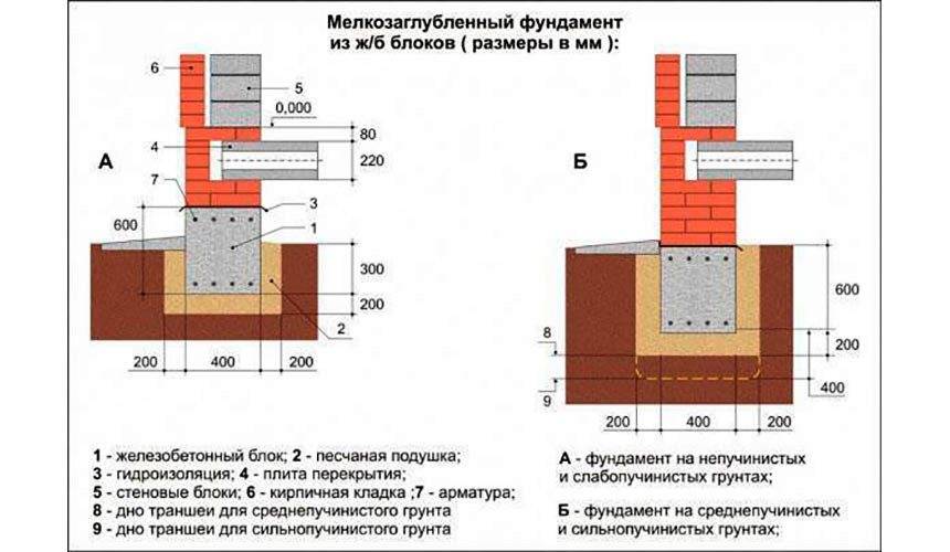 Важно: на территориях с твердой скалистой почвой ленты мелкого заложения заменяются на незаглубленные основания, которые размещаются непосредственно на поверхности грунта.