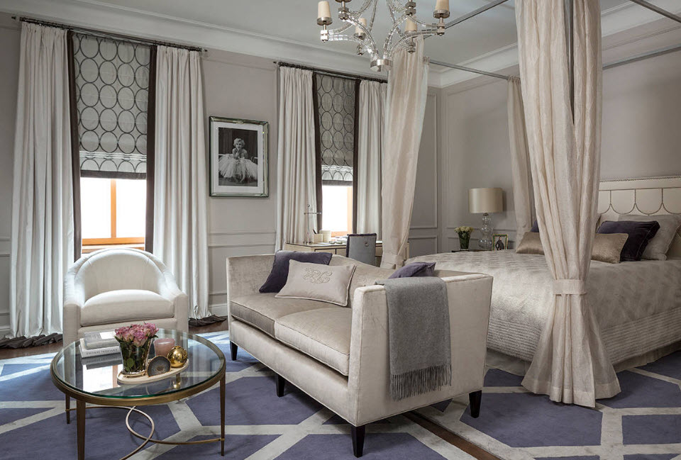 Самый популярный и распространенный вариант — это использование ширмы или шторы. Самый оптимальный вариант — это сделать гостиную зону основной, а спальню отделить перегородкой. Во-первых, это эстетически приятно взгляду, а во-вторых, такой вариант оформления спальни-гостиной будет удобен при приеме гостей: вы всегда сможете спрятать свою спальню, и никто не догадается, что за шторой что-то есть.