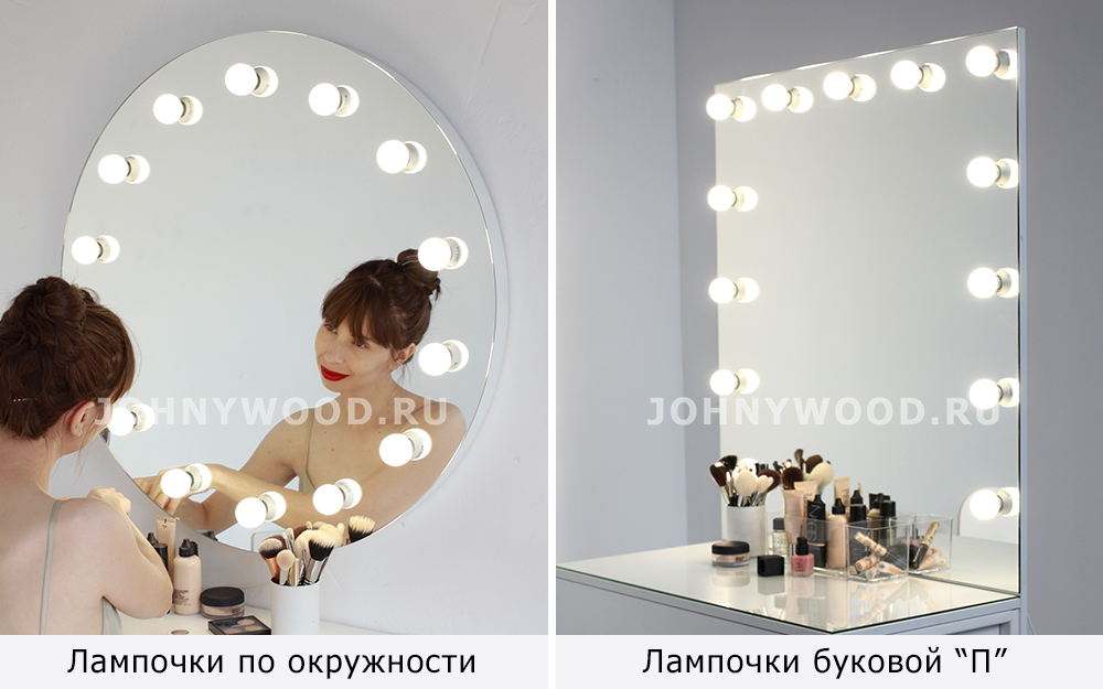 - Если вы часто наносите макияж и наряжаетесь, то вам стоит купить гримерное зеркало. От стандартного его отличает наличие качественной и яркой подсветки.