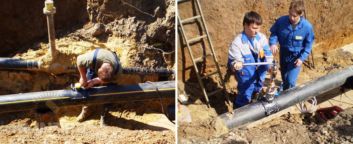 Если необходима врезка в подземные коммуникации, то для начала нужно выкопать яму в месте, где расположен трубопровод