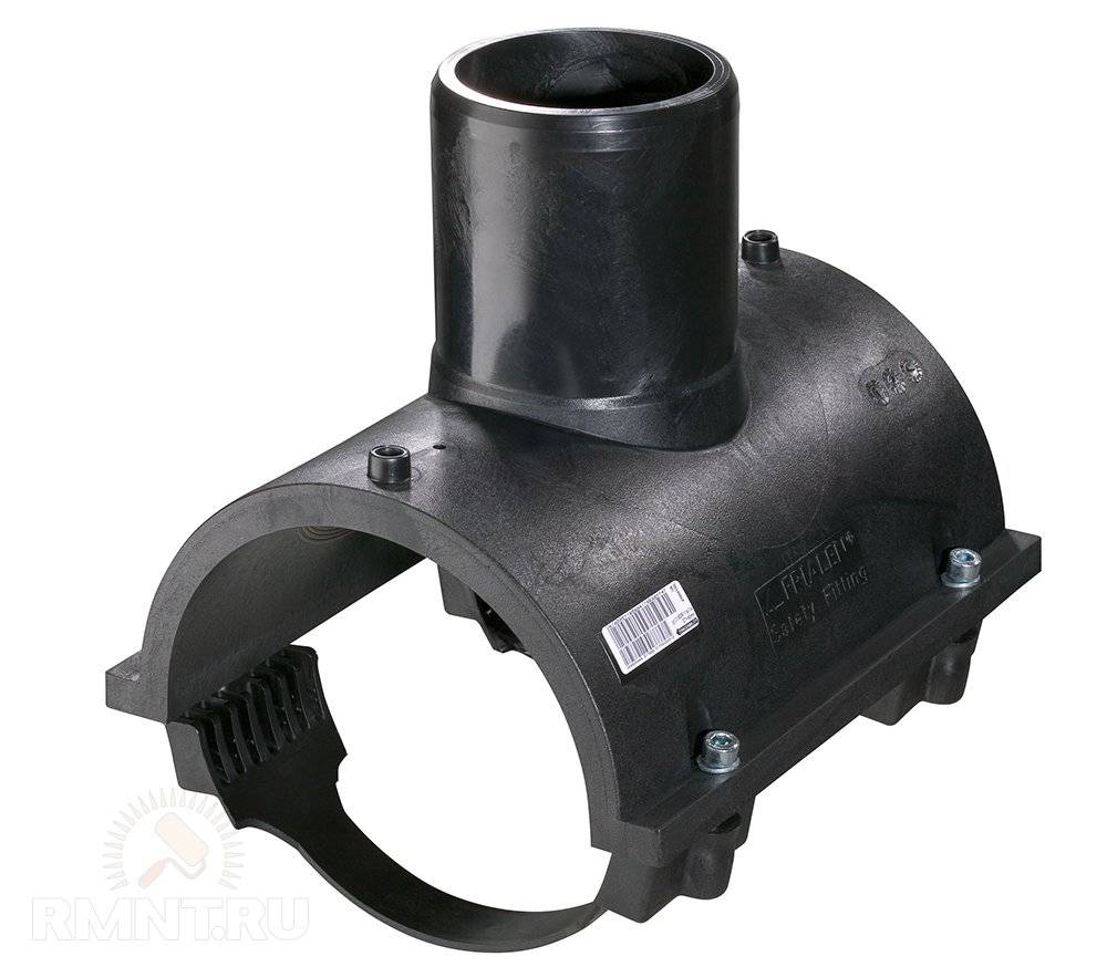 Для монтажа на пластиковые трубы можно использовать ординарные седловые хомуты или седелки-обоймы.Обратите внимание! Оптимальным вариантом седелки для труб из полимера – электросварной разборной хомут. Разбираясь на 2 части, он устанавливается над местом врезки и спаивается с телом трубы при помощи сварочного аппарата