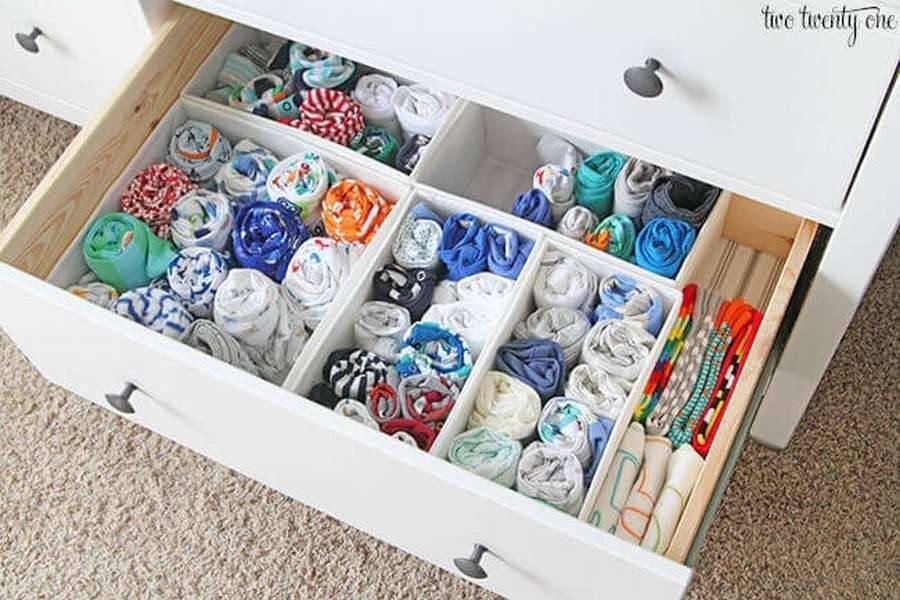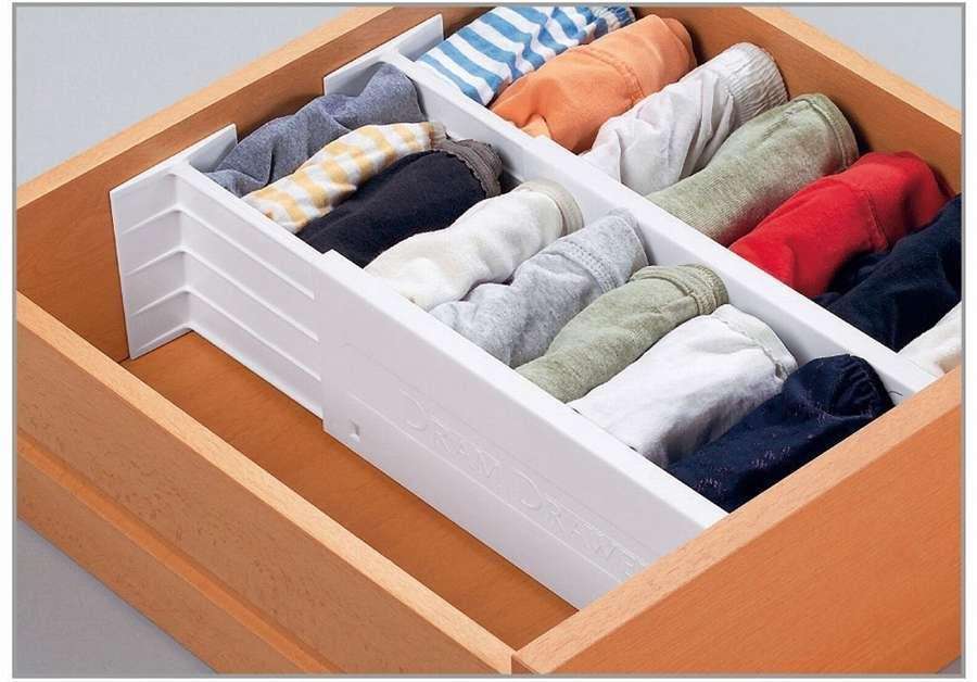 Самый простой вариант – сделать перегородки в ящике комода, разделив его на несколько удобных секций.