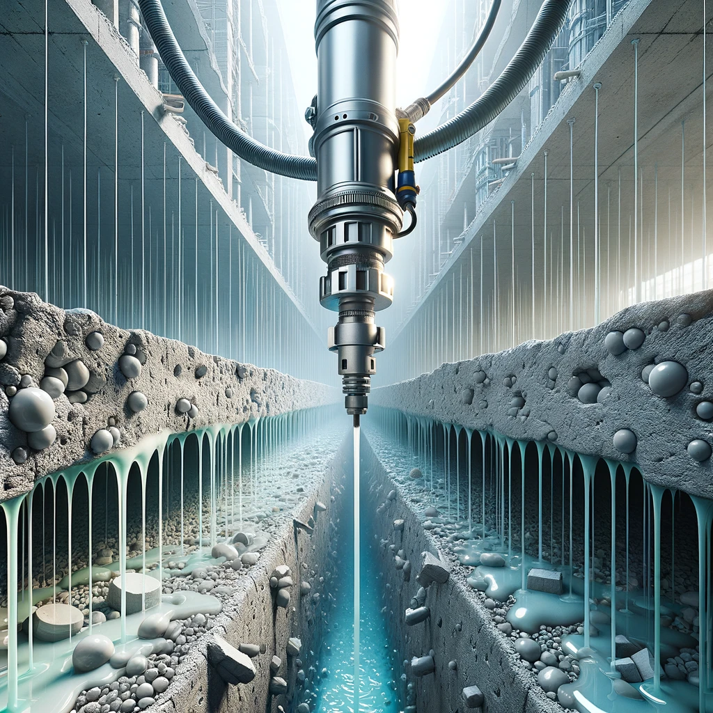 Процесс инъекционной гидроизоляции включает в себя несколько этапов. Сначала производится подготовка поверхности, включающая очистку от грязи и старых смол и гелей. Затем проводится проверка на наличие трещин и пор, которые могут быть потенциальными местами проникновения влаги.