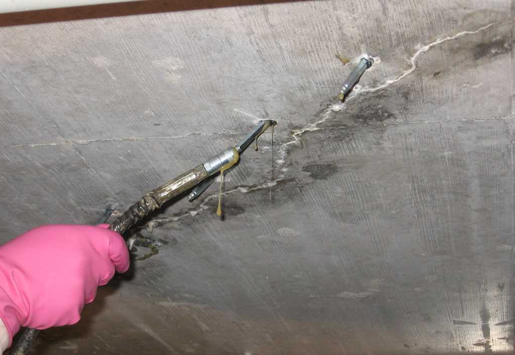 Суть этого «медицинского» метода: подготовленную полимерную смесь закачиваются под давлением в разрывы-трещины, в поры или швы стен/пола/потолка любой конструкции. В местах, куда достать сложно, практикуют специнъекторы – такой их тип, который может влить смесь под повышенным давлением.