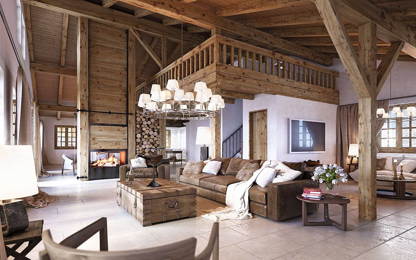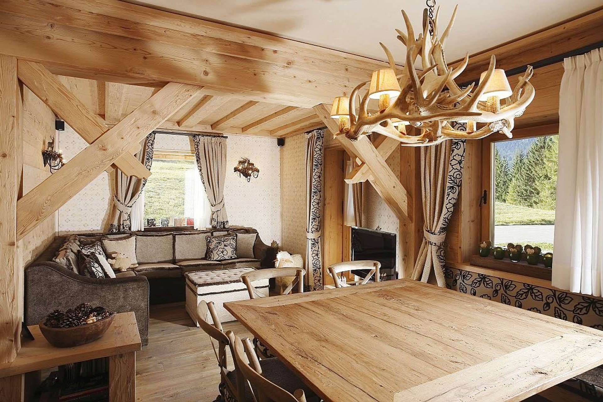 Дизайн внутреннего пространства деревянного дома фото: стиль шале в интерьере.