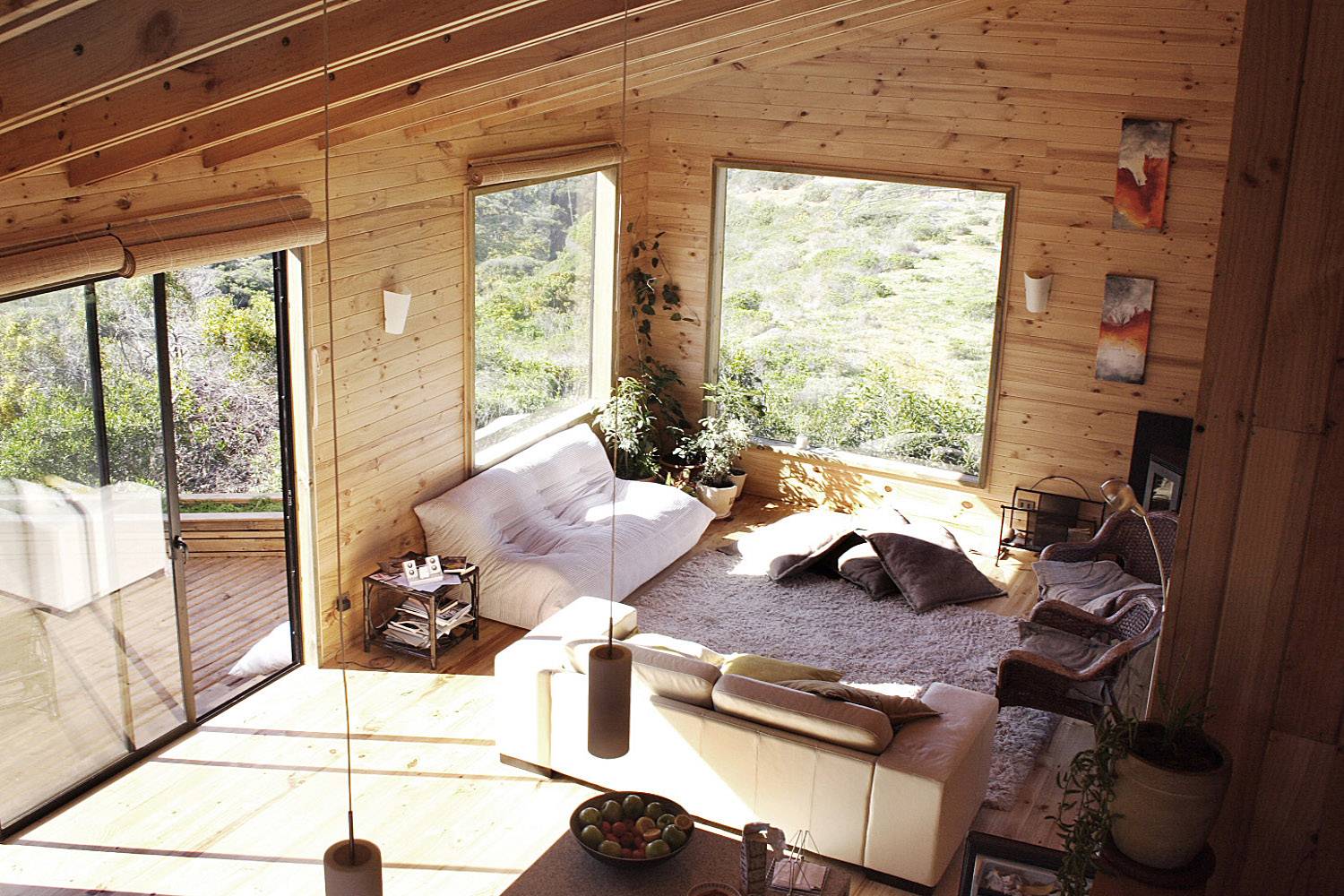 Это зачастую деревянная отделка стен, пола, а иногда и потолка в интерьере. Мебель должна быть лаконичной, простой в эксплуатации, функциональной, цветовая гамма в интерьере должны иметь светлые тона, что отлично сочетаются с текстурой дерева. Дизайнерскими элементами декора служат вязаные покрывала, коврики, декоративные деревянные поделки, это могут быть забавные статуэтки, приносящие счастье и удачу в Ваш дом, а также декоративные аксессуары в корабельной тематики.