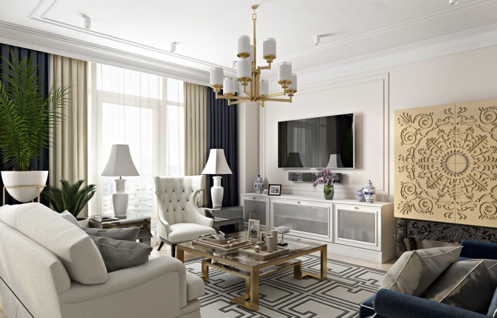 Современная классика — отличный вариант для гостиной
