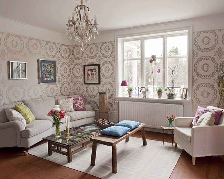 Если ваш зал оформлен в классическом стиле, обратите внимание на обои с традиционными узорами и пастельной цветовой гаммой.