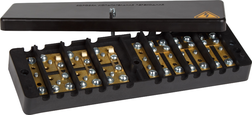 Типовые переходные коробки выпускаются в нескольких исполнениях, различающихся своим видом и формой. Чаще всего они имеют вид прямоугольной колодки с толстыми стенками, изготовленными из прочного и негорючего материала (карболита или пластика). В таком исполнении коробка напоминает подложку с размещенными на ней группами клемм, образующих так называемую «зажимную клеть».