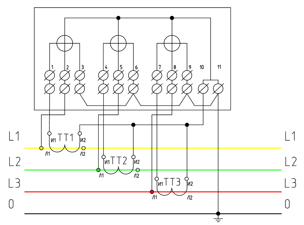 При этом, стоит отметить, что в правилах устройства электроустановок нет конкретных схем по подключению. Но там есть строгие требования к такого рода схемам (в том числе, по возможному закорачиванию, пломбированию). Поэтому, эти требования также необходимо соблюдать.