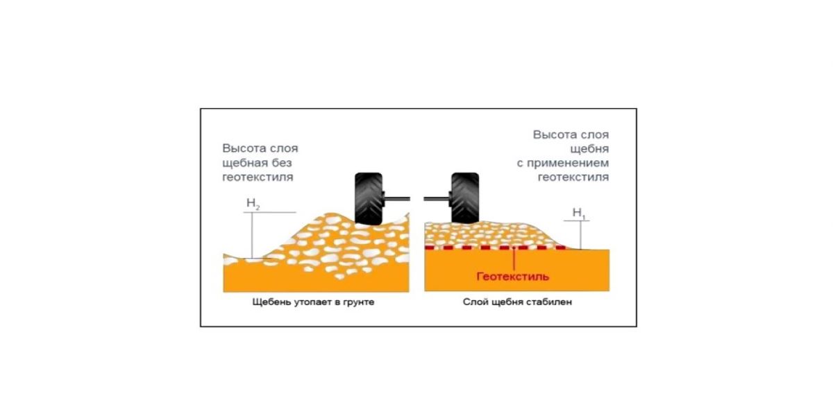 4. На подушку из песка выстилается геотектсиль для предотвращения прорастания сорняков. Поверх ткани делают подсыпку из щебня мелкой фракции (15 см).