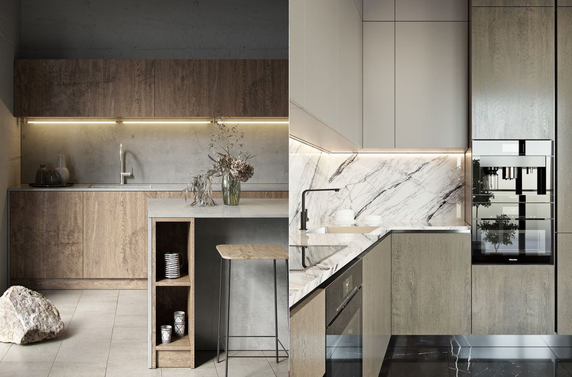 Также нужно ориентироваться на весь дизайн квартиры, учитывать, натуральные или искусственные материалы в нем преобладают. Если ставка сделана на естественность и экологичность окружающей обстановки, то и кухня не должна стать исключением.