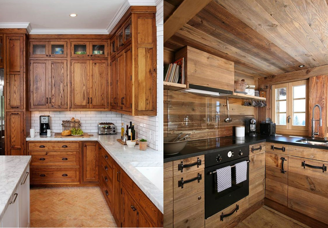 Кухни из массива сосны также имеют право быть, но обратите внимание, что этот материал слишком мягкий и неустойчивый к механическим повреждениям