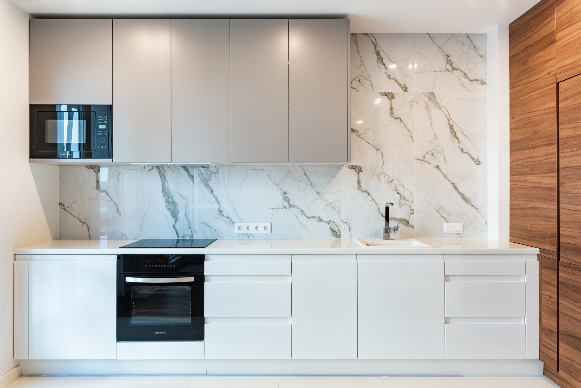 Если вы случайно повредите фасад, очень удобно, что его не придется менять. Мастер легко сможет убрать царапину. При желании со временем на всех фасадах можно обновить краску: кухня сразу же обретет более свежий вид. Кстати, если захочется, можно даже изменить цвет. Таких возможностей с другими материалами нет.