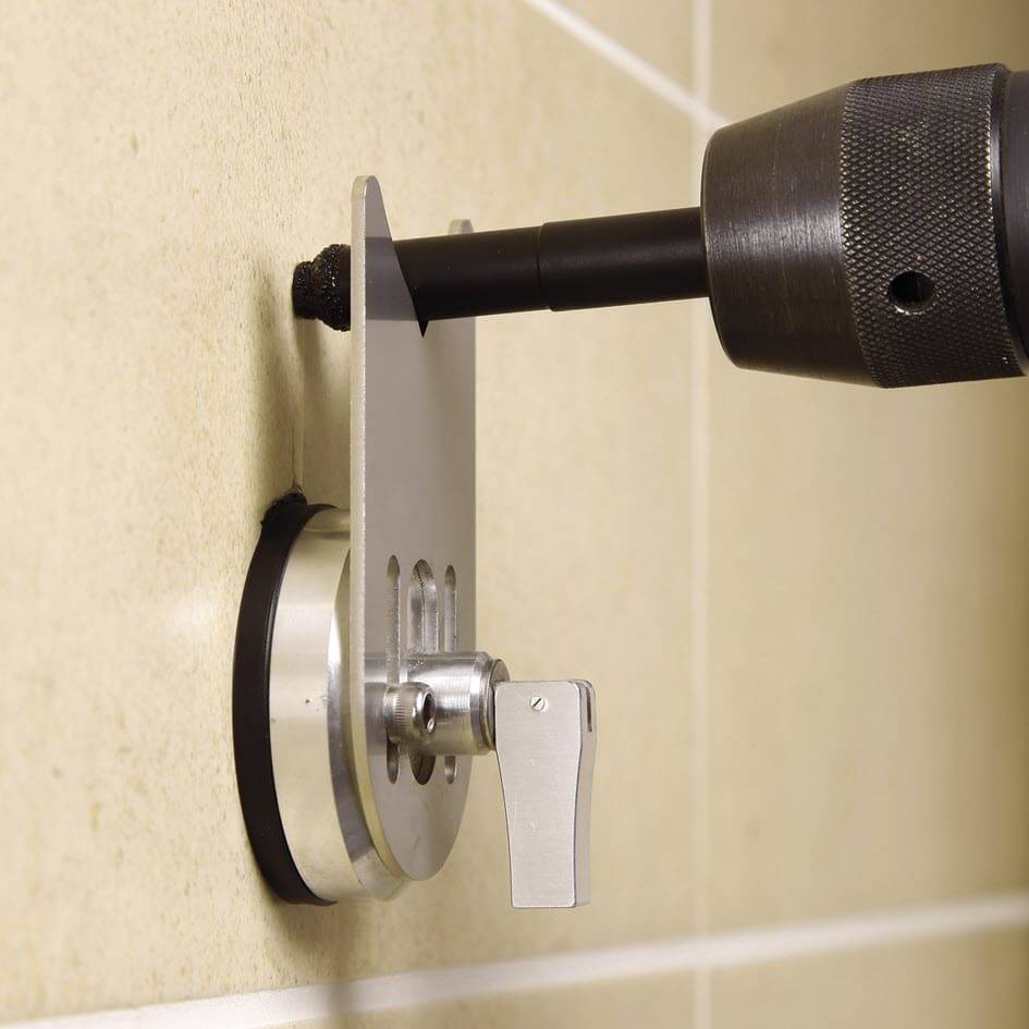 Как сделать отверстие в керамограните, не повредив материал? Прежде всего, заготовка надежно закрепляется на верстаке (за исключением уложенных поверхностей). Плоскость под плиткой должна быть идеально ровной, пустоты высотой даже в 1 мм могут привести к раскалыванию.