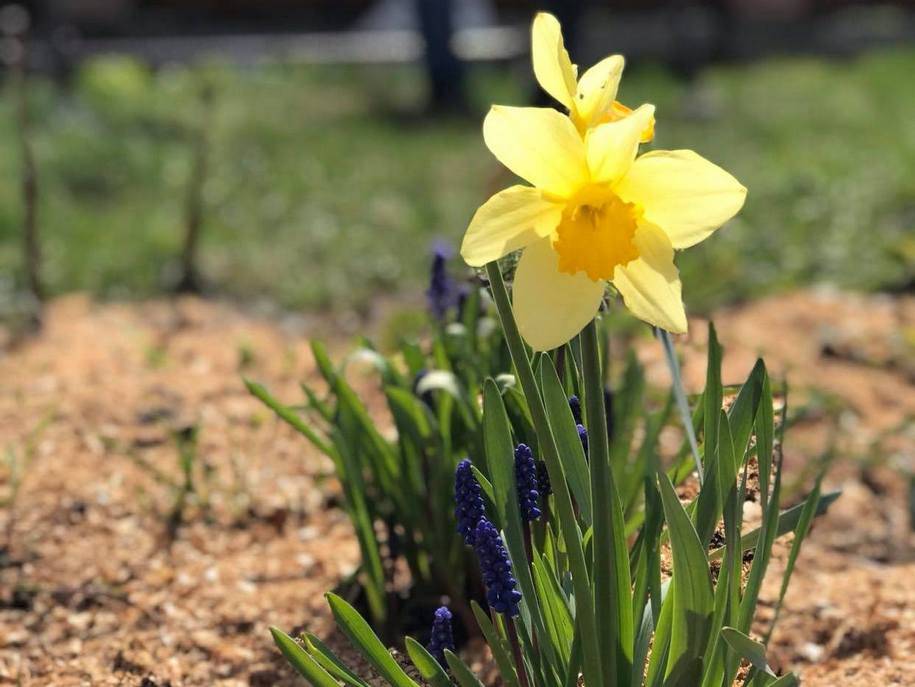 В новом саду коры сосны у меня уже нет, зато есть опилки. Все луковичные весной сажались в ямки выкопанные прямо в дерене и щедро мульчировались опилками