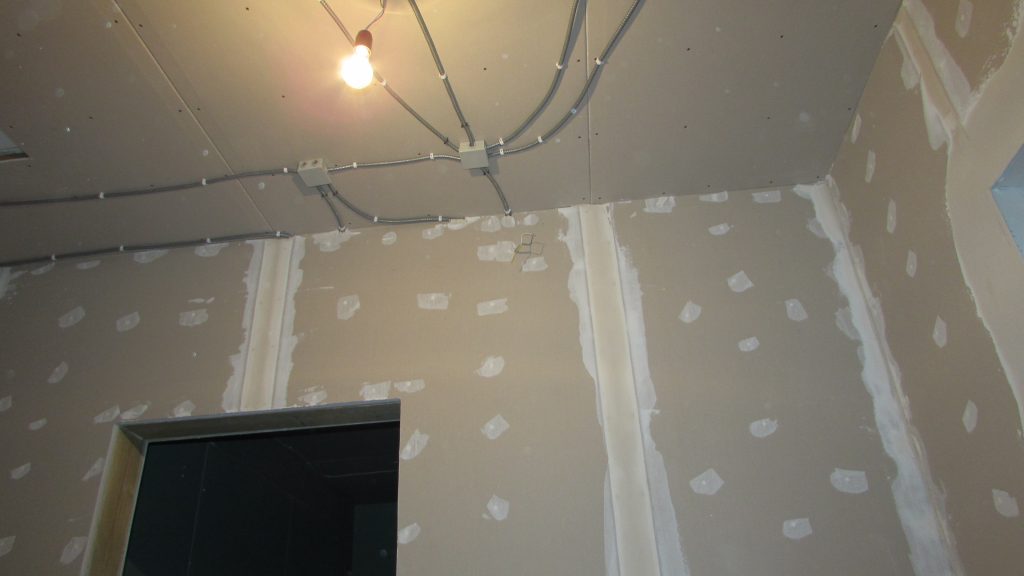 - Самое необходимое в подготовке — это заделка швов гипсокартона, так как его края округлые и на их стыках образовываются впадины и без заделки здесь не обойтись.