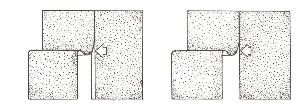 Второе – нельзя формировать шов в/на самом углу. На наружном развороте можно установить декоративную накладку для защиты обоев. На внутреннем при разрезании полотнищ есть риск повреждения как основания, так и армирующей прослойки. Из-за этого стык в углу в скором времени может разойтись. Причинами являются разное тепловое расширение материалов, перепады влажности и вибрационные нагрузки.