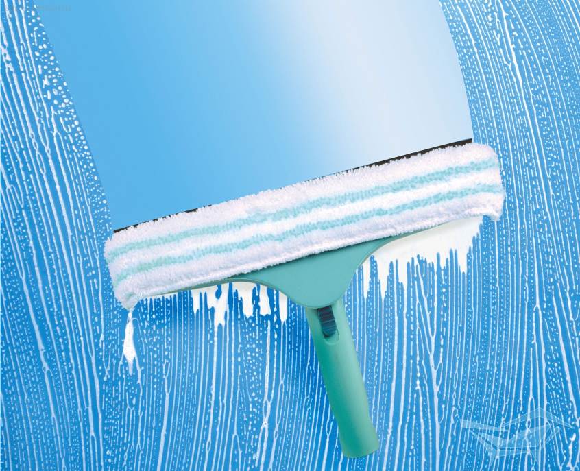 - Стеклоочиститель. Вы когда-нибудь слышали о таком инструменте, как стяжка или сгонка? Так вот это и есть тот самый стеклоочиститель. С его помощью вымыть до блеска стекла достаточно просто. Кроме того, продается инструмент с длинной ручкой, что позволит не прыгать по подоконникам и стульям, а некоторые модели имеют с одной стороны сгонку, а с другой – губку, очень удобный вариант.