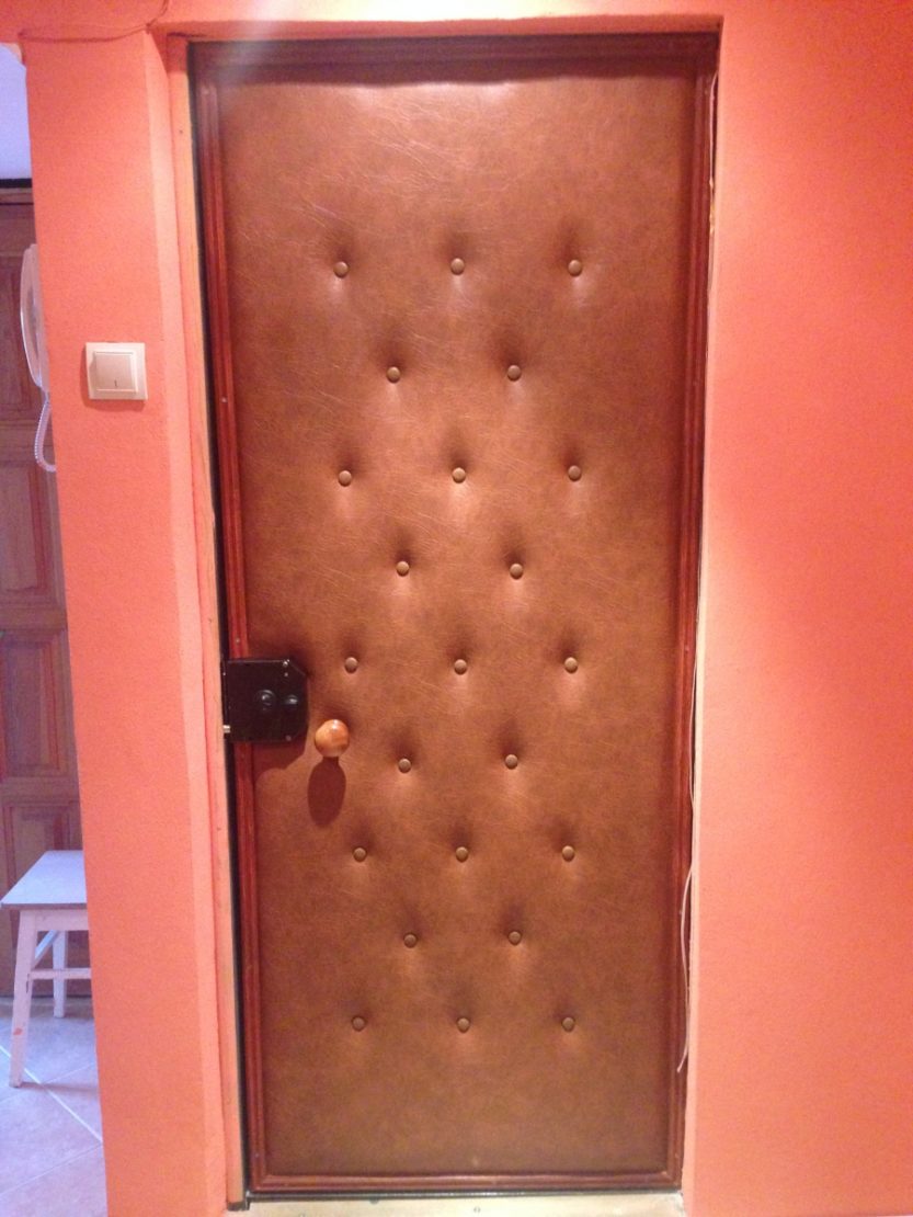 В итоге получают обитую дерматином утепленную дверь, которая прослужит еще пару десятков лет. Практично, недорого, без замены полотна и привлечения услуг специалистов.