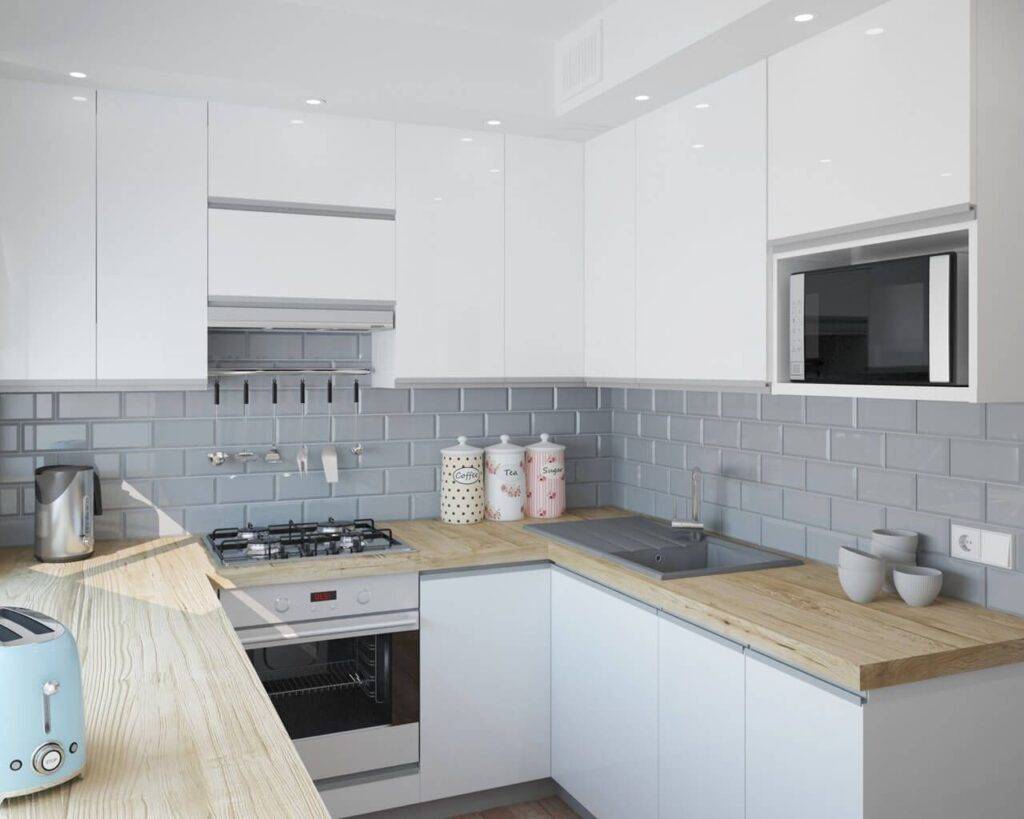 Угловая планировка наиболее оптимальна для маленькой кухни.