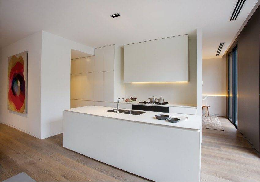 Нейтральность. Выбранный вариант выполняет сугубо функциональную задачу. Но бывает, что сочетание фартук плюс столешница, сделанные в едином декоре, становятся изюминкой кухни;