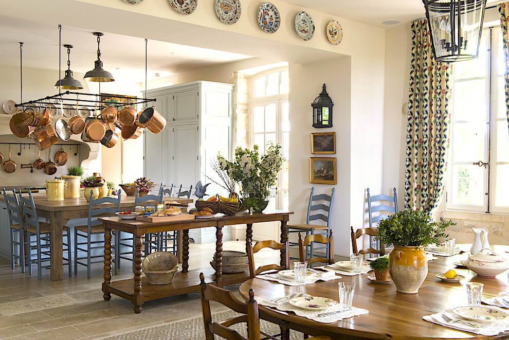 Обилие фарфора и керамики, а так же металлическая утварь из меди или чугуна, различные старинные механизмы для быта. Живые цветы или букетики сухоцветов обязательно присутствуют в этом стиле. Плетёные корзинки, подсвечники и горшочки, расписные тарелки, зеркальца в витиеватых оправах, пейзажные картинки, настенные часы, декоративные подносы, фигурки, антикварные рамы для картин, салфетки с мотивами лаванды, мешочки с травами и крупы в банках. В общем, Прованс – это стиль с разнообразным декором.