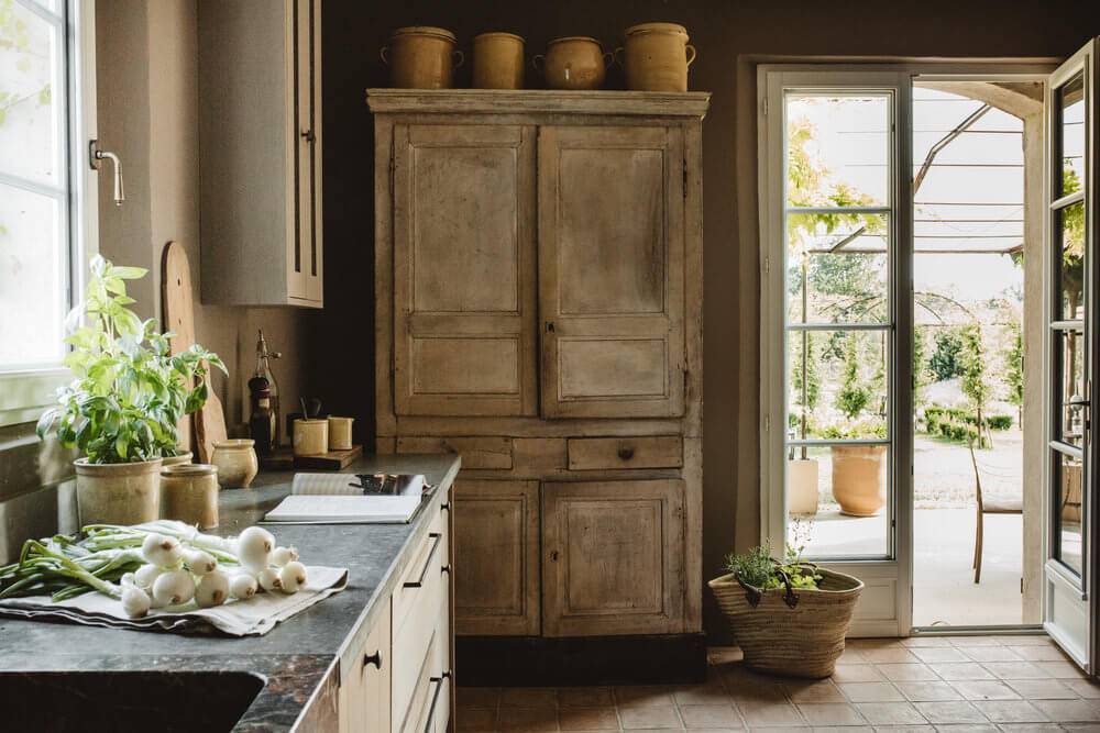 - Старинная или искусственно состаренная мебель, выцветшая, со сколами и ссадинами, что как бы указывает на то, что вещью пользуется ни одно поколение. Шкафы, комоды, полки с традиционной росписью, тронутые патиной времени, должны создавать ощущение, что предмет имеет свою историю и это придаёт ему особую ценность. Мебель так же должна быть выполнена из натуральных материалов и иметь светлый оттенок.