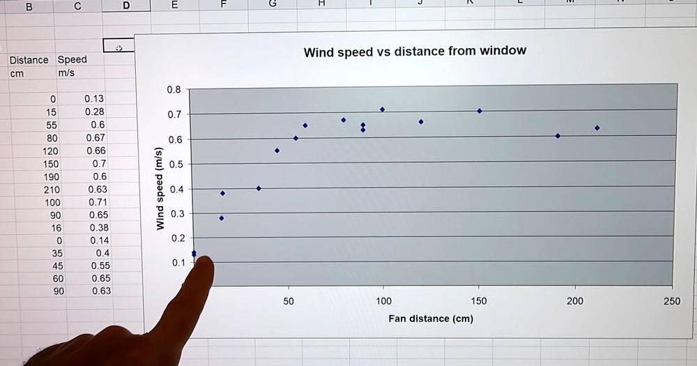 Выяснилось, что лучшее место – это 1,5м от окошка. Именно в этом случае скорость продува и обмен воздуха внутри дома были максимально возможными.