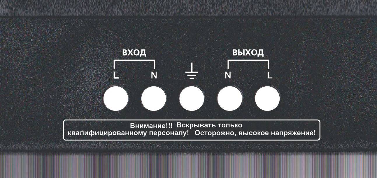 На самом деле самостоятельно подключить стабилизатор напряжения к сети в доме довольно просто. Сзади устройства находится клеммная колодка на 5 разъемов. Обычно очередность подключения проводов следующая (слева направо): вводные фаза и ноль, заземление, фаза и ноль, идущие на нагрузку. На фото ниже Вы можете увидеть расположение разъемов: