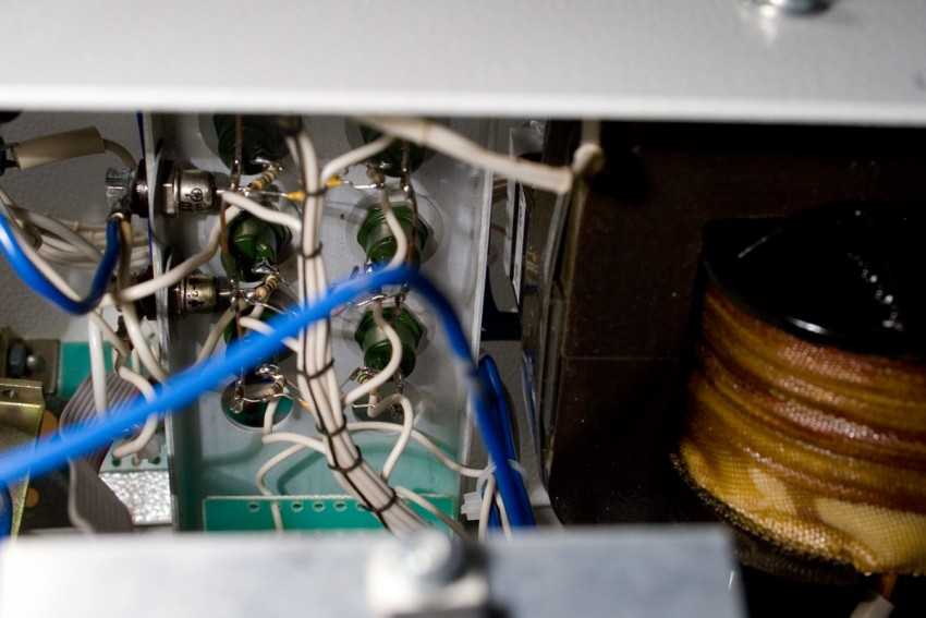 При этом в электрощите все провода обжаты, даже на выключателях освещения с минимальными токами, а вот на клеммниках стабилизатора или его автоматах, постоянно можно встретить голый провод просто поджатый винтом.