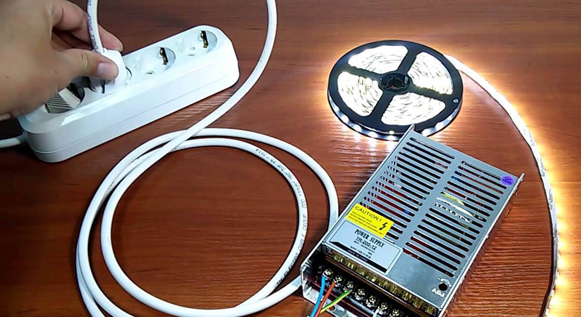 При включении светодиодной полосы 12В просто в розетку она сгорит. Поэтому для включения таких устройств в бытовую сеть необходимы дополнительные устройства.