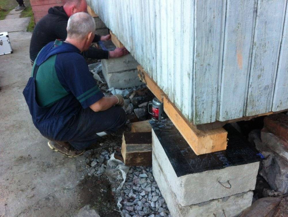 - если у вас столбчатый или свайный фундамент, понадобятся деревянные щиты высокой прочности для размещения домкратов;