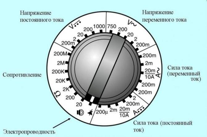 Каждый мультиметр разделен на зоны с настройками для работы с определенным видом напряжения электрической сети: