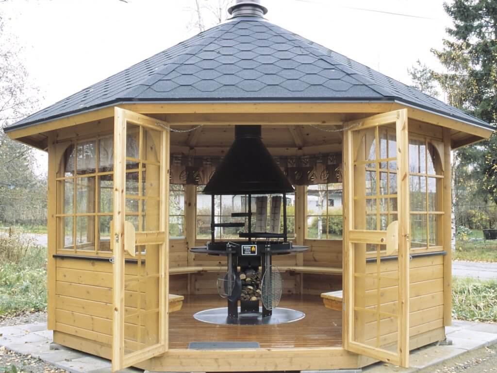 Отдельно можно отметить беседки с грилем. Уникальность такой постройки прямо исходит от горючести древесины, которая, как бы то ни было, не является поводом возводить конструкцию из других материалов.